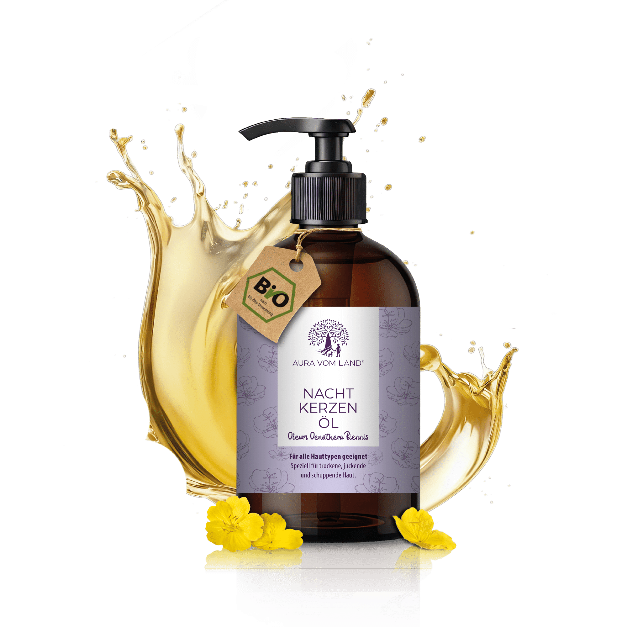 Pflegendes Bio Nachtkerzenöl von Aura vom Land – naturrein, kaltgepresst und vegan. Ideal für empfindliche, trockene oder reife Haut. Unterstützt die Hautregeneration und stärkt die natürliche Schutzbarriere. In hochwertiger 200 ml Pumpflasche.