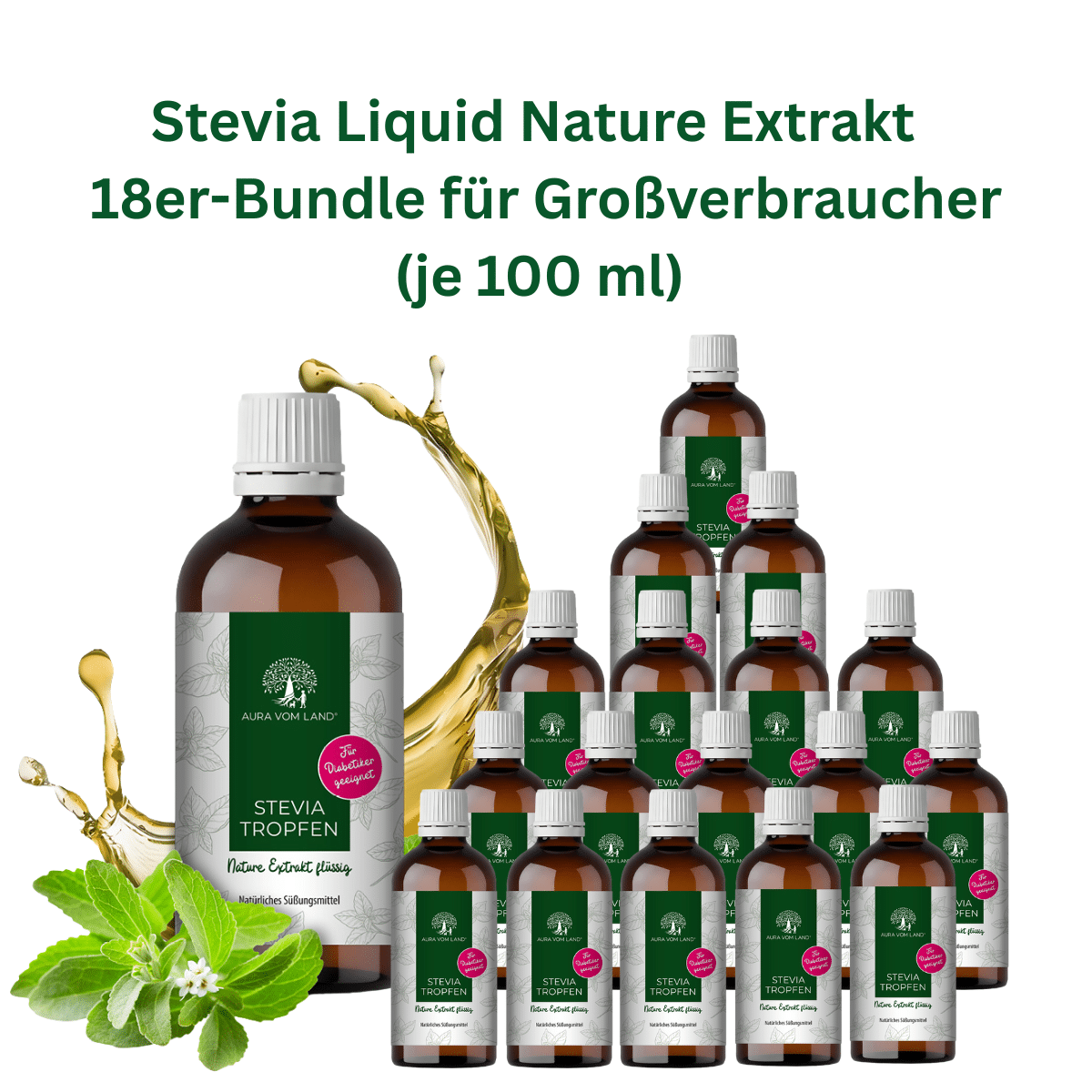 Für unser Produkt verwenden wir ausschließlich 100 % natürliche, konventionell angebaute Steviablätter aus kontrollierten Quellen. Die schonende Verarbeitung in mehreren Schritten – von der wässrigen Extraktion bis zur sorgfältigen Reinigung – garantiert ein reines, klares Fluid mit intensiver Süßkraft und bester Verträglichkeit.